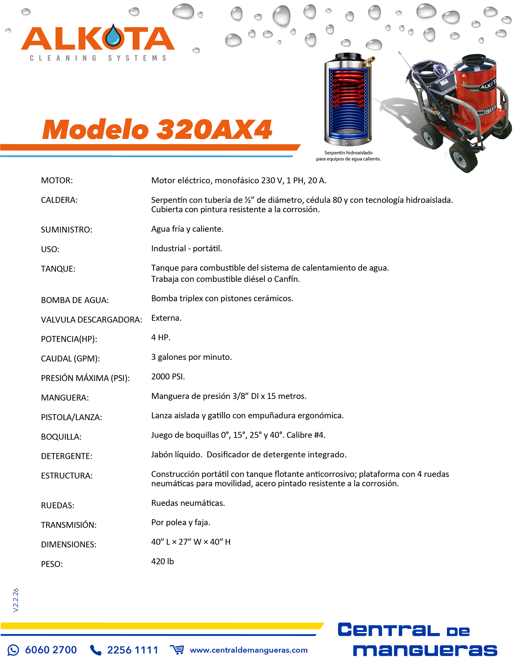 - Presión: 4000 PSI