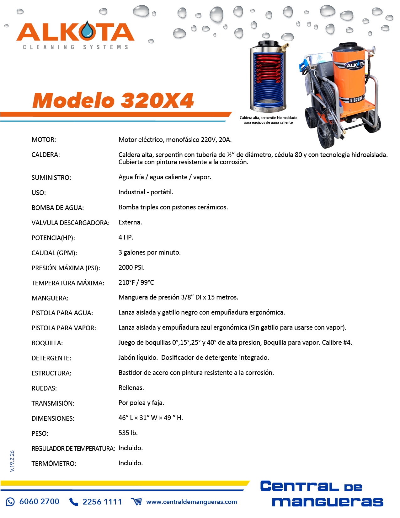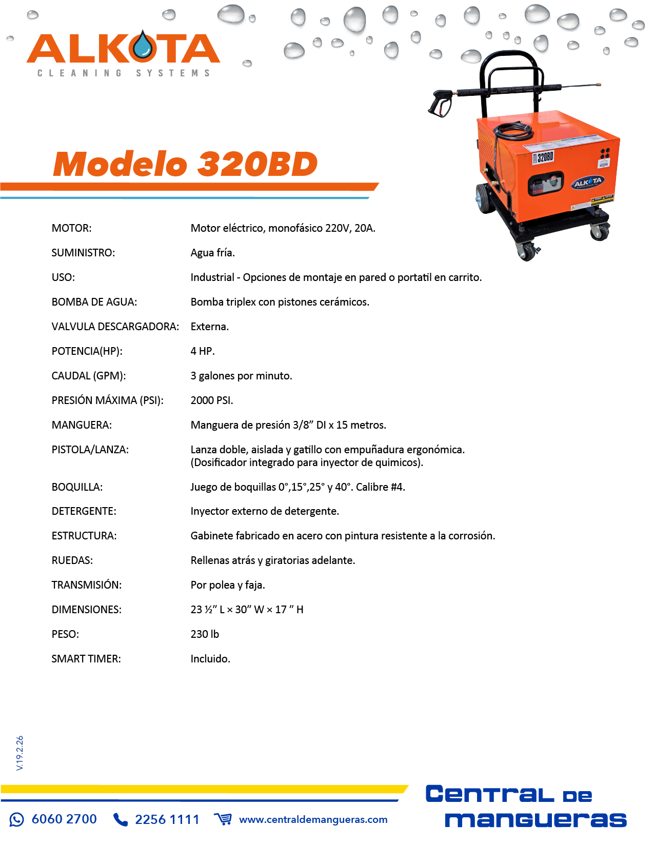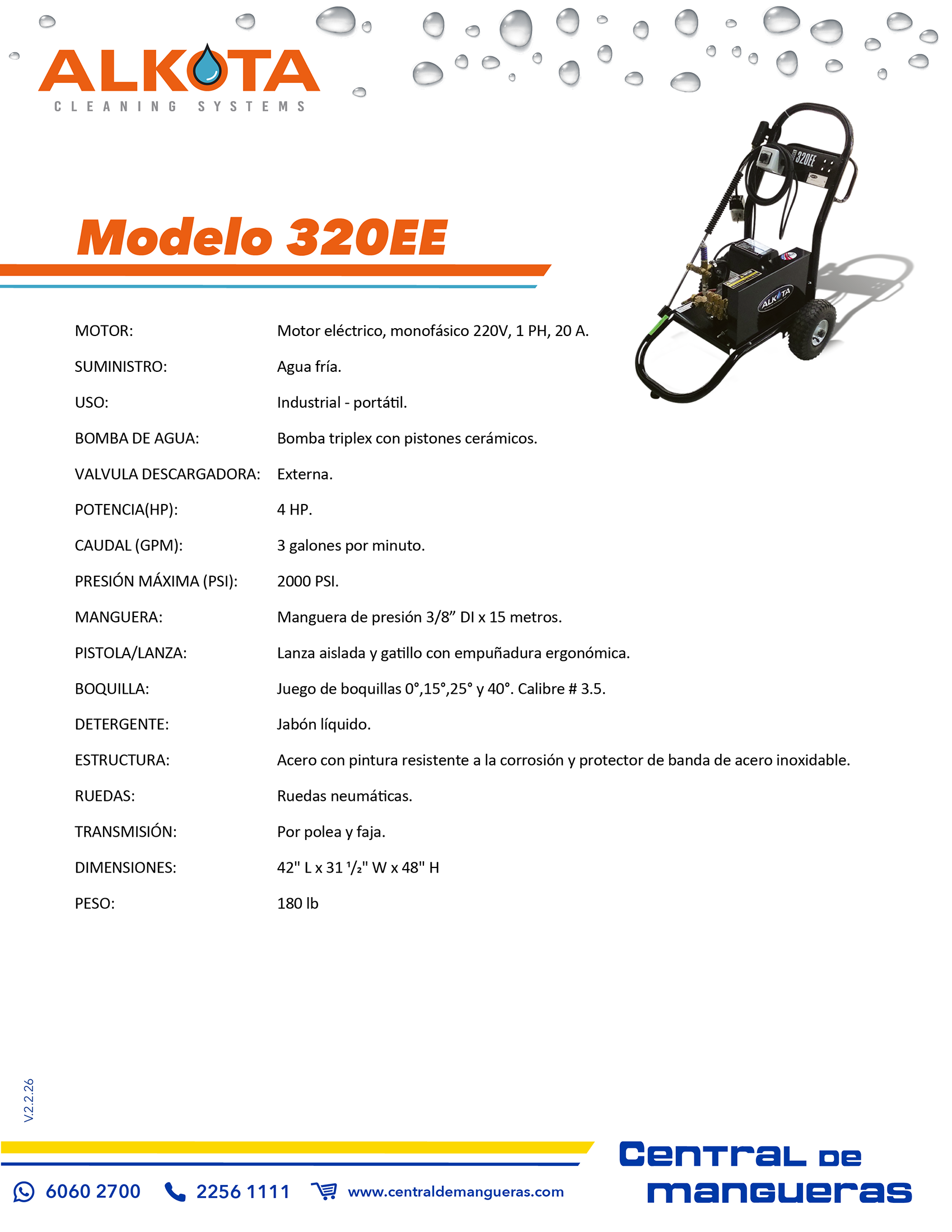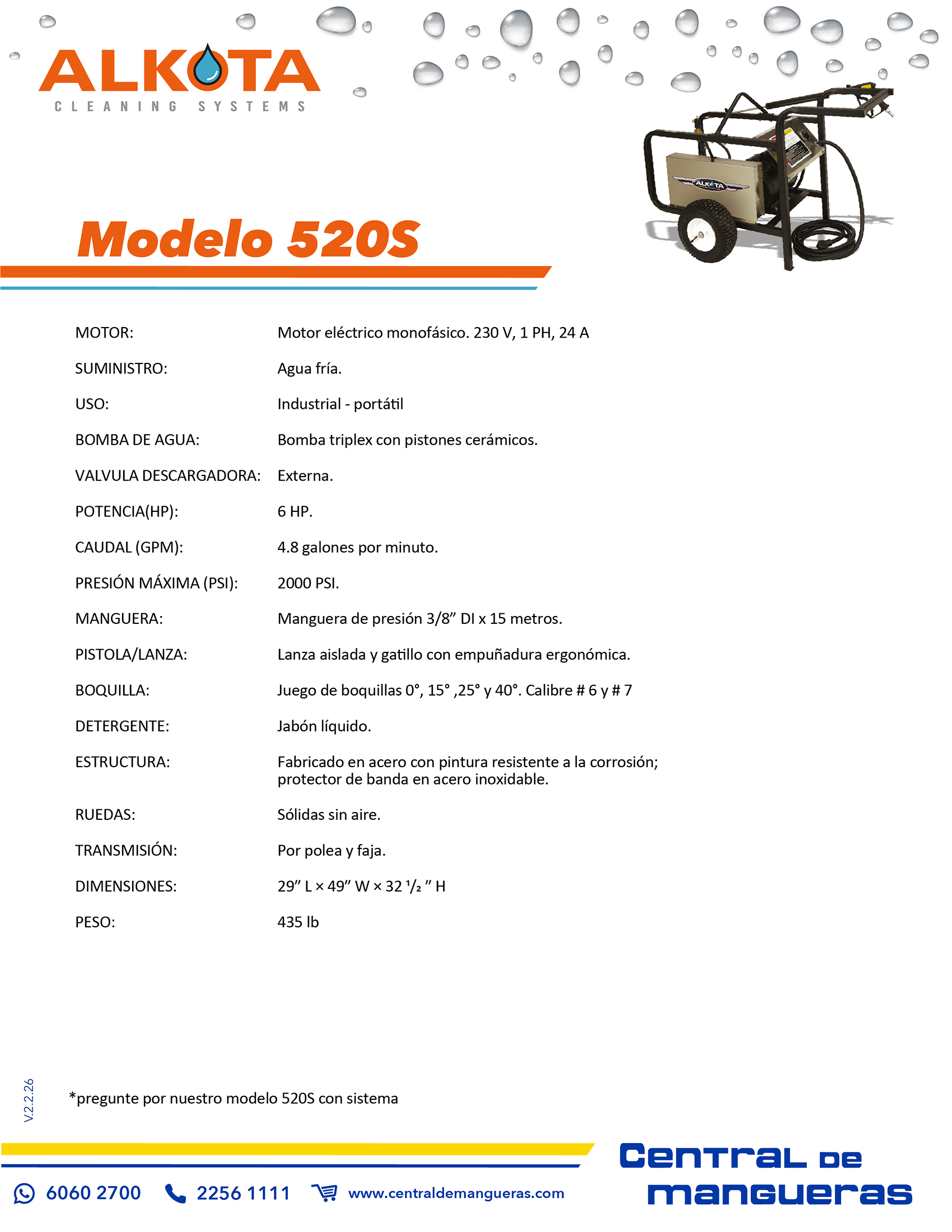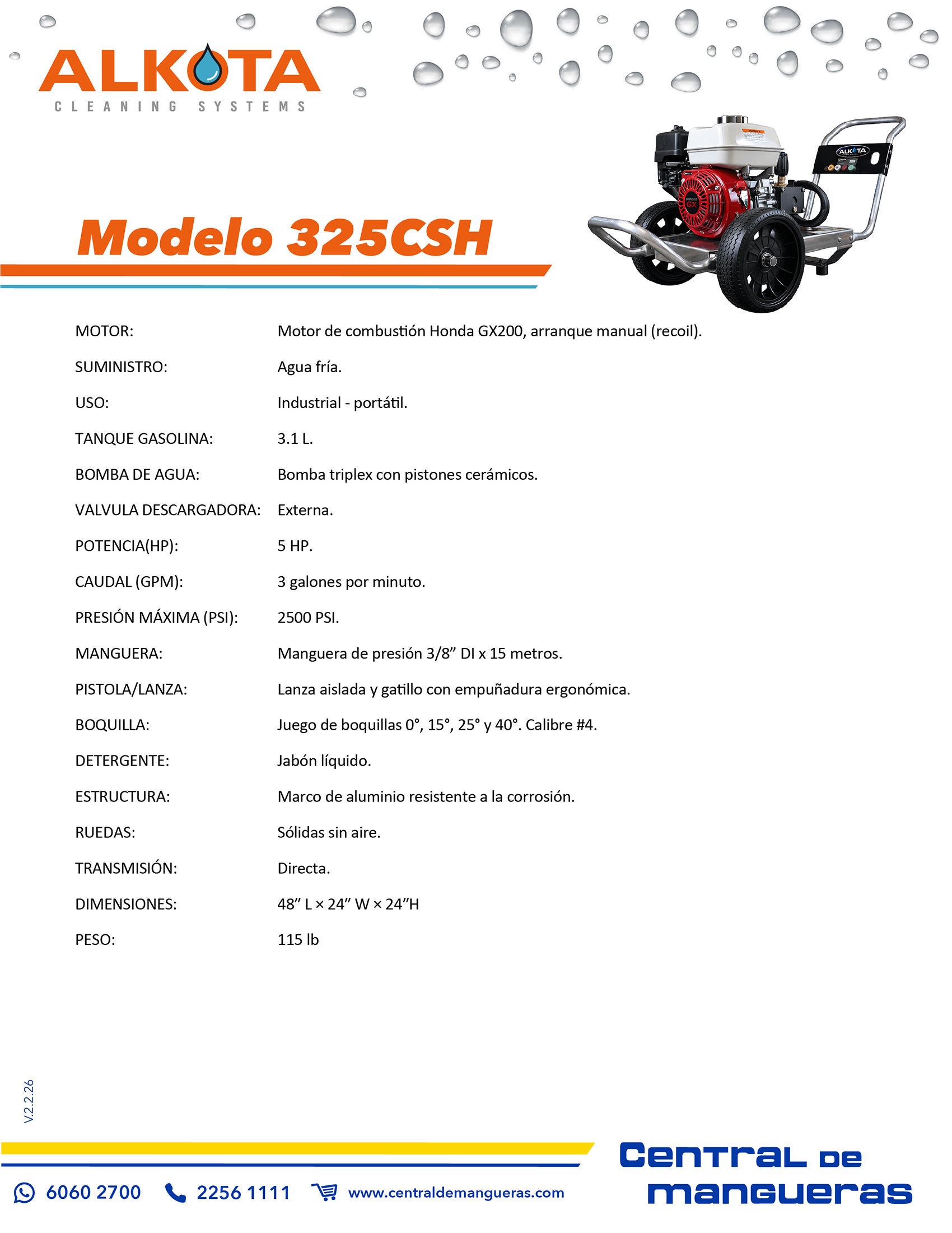- Presión: 2500 PSI