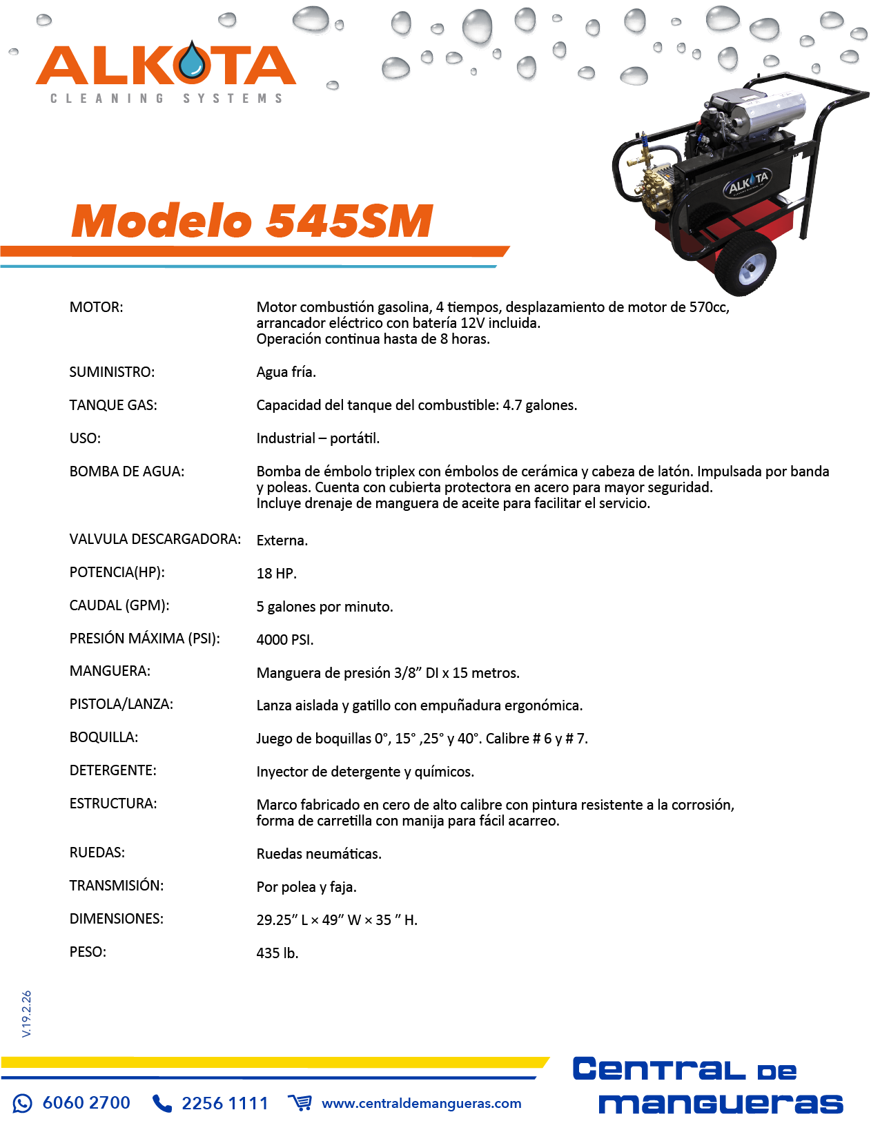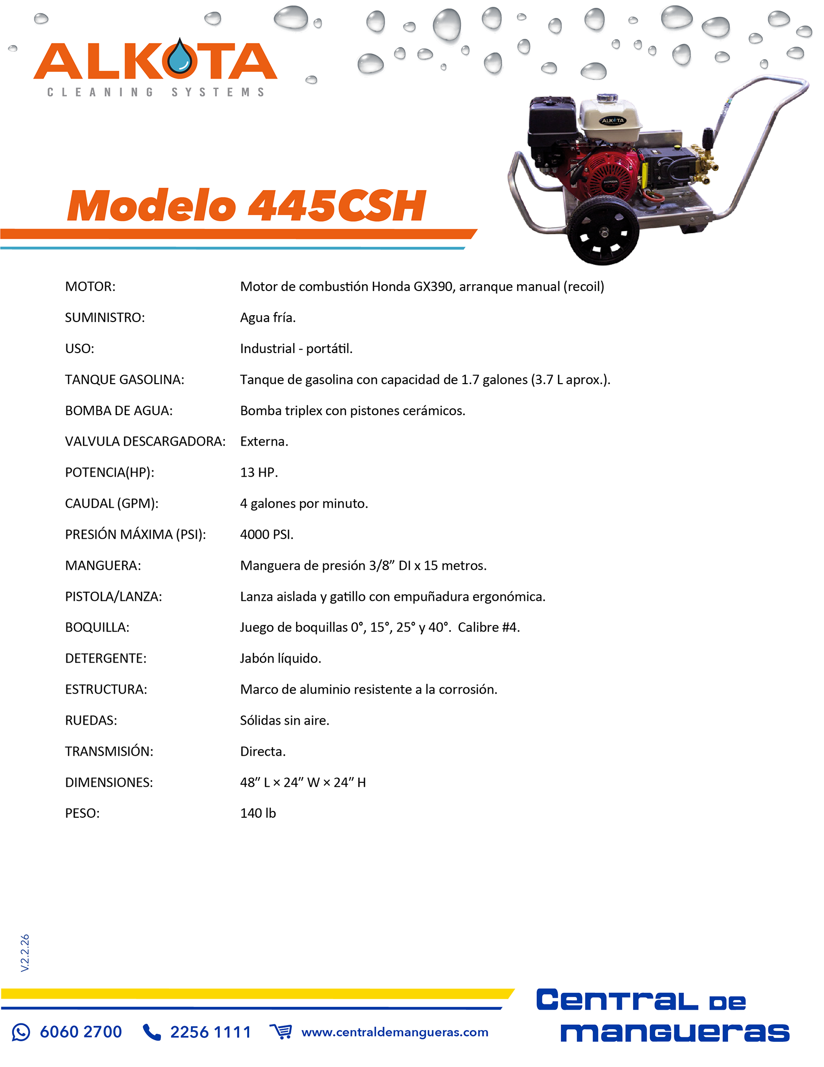- Presión: 1450 PSI